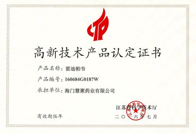 江苏省高新技术产品-雷迪帕韦